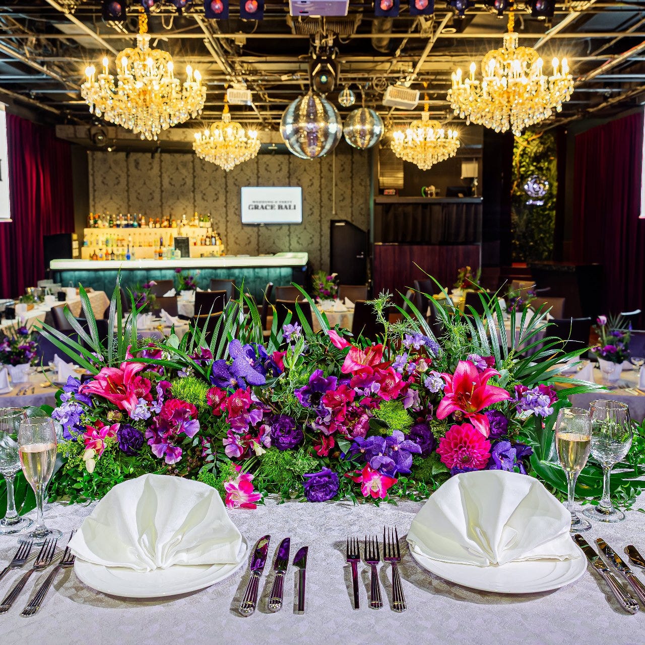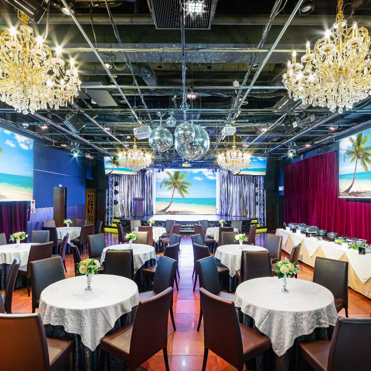 パティシエがいる, シェフがいる, パーティーコーディネータがいる, バーテンダーがいる, ワインセラーがある スポーツ観戦ができる, バンド演奏ができる マイク利用可, ステージあり, プロジェクター・スクリーンあり, ビンゴゲームあり, レンタル楽器あり |