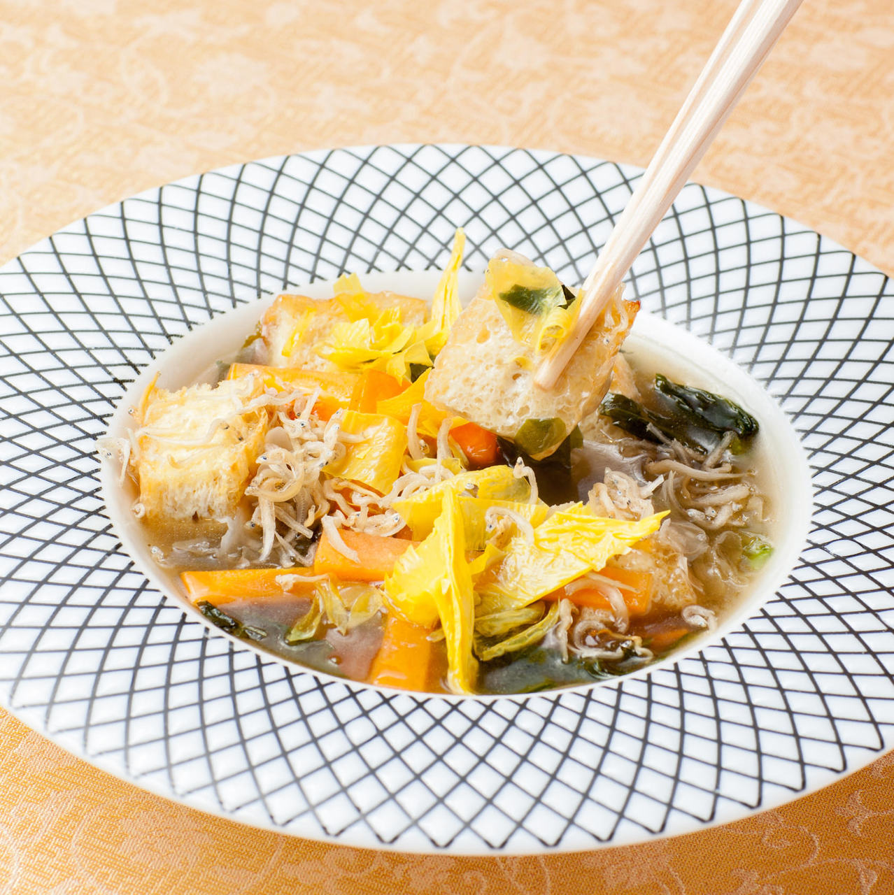 米, 蟹, 湯葉, ウズラの卵