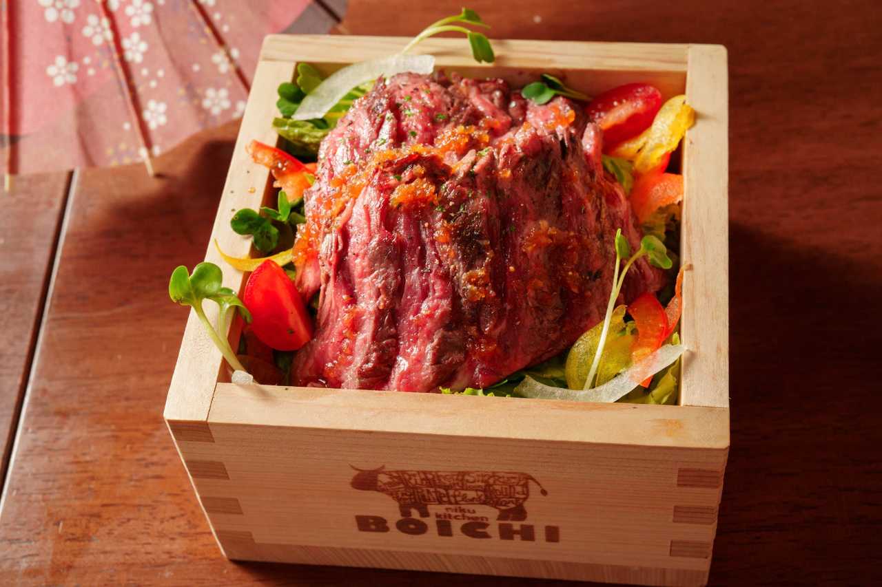 A5和牛の自家製ローストビーフと葡萄牛カイノミステーキ丼