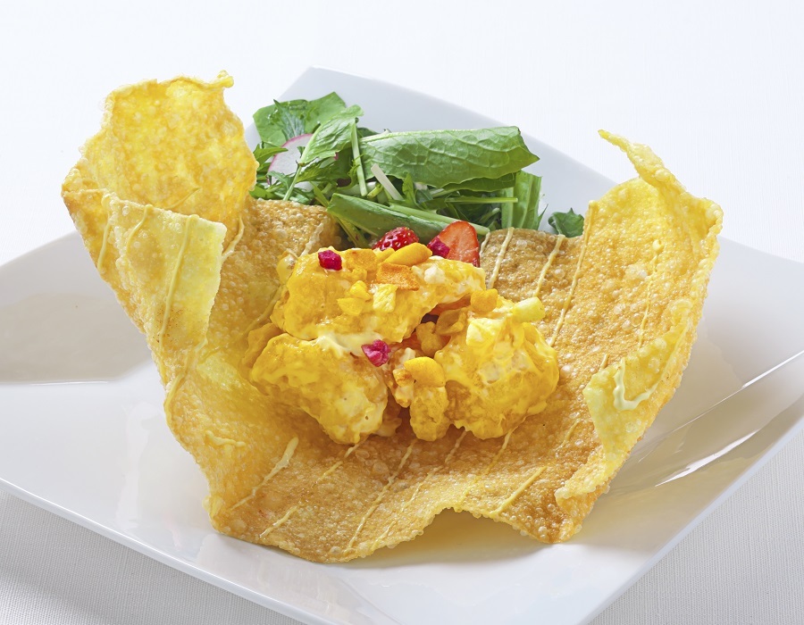 小麦粉の皮に、海老と野菜などの具を巻き、油で揚げた料理。
