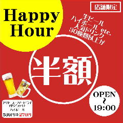 月~木 16:00~翌1:00(L.O.24:00、ドリンクL.O.24:30) 金 16:00~翌3:00(L.O.2:00、ドリンクL.O.2:30) 土 13:00~翌3:00(L.O.2:00、ドリンクL.O.2:30) 日 13:00~翌1:00(L.O.24:00、ドリンクL.O.24:30)