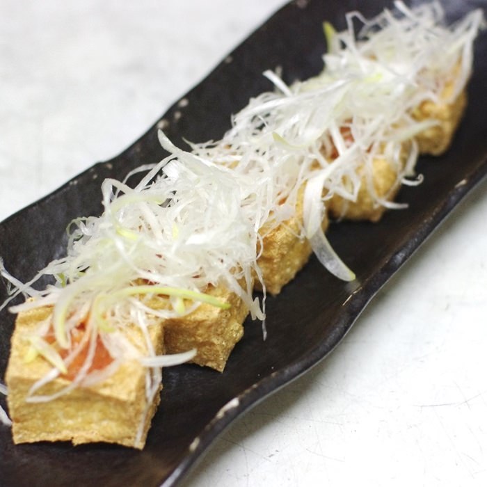 厚切りの豆腐を軽く揚げた厚揚げは、煮込み料理に使われる。