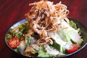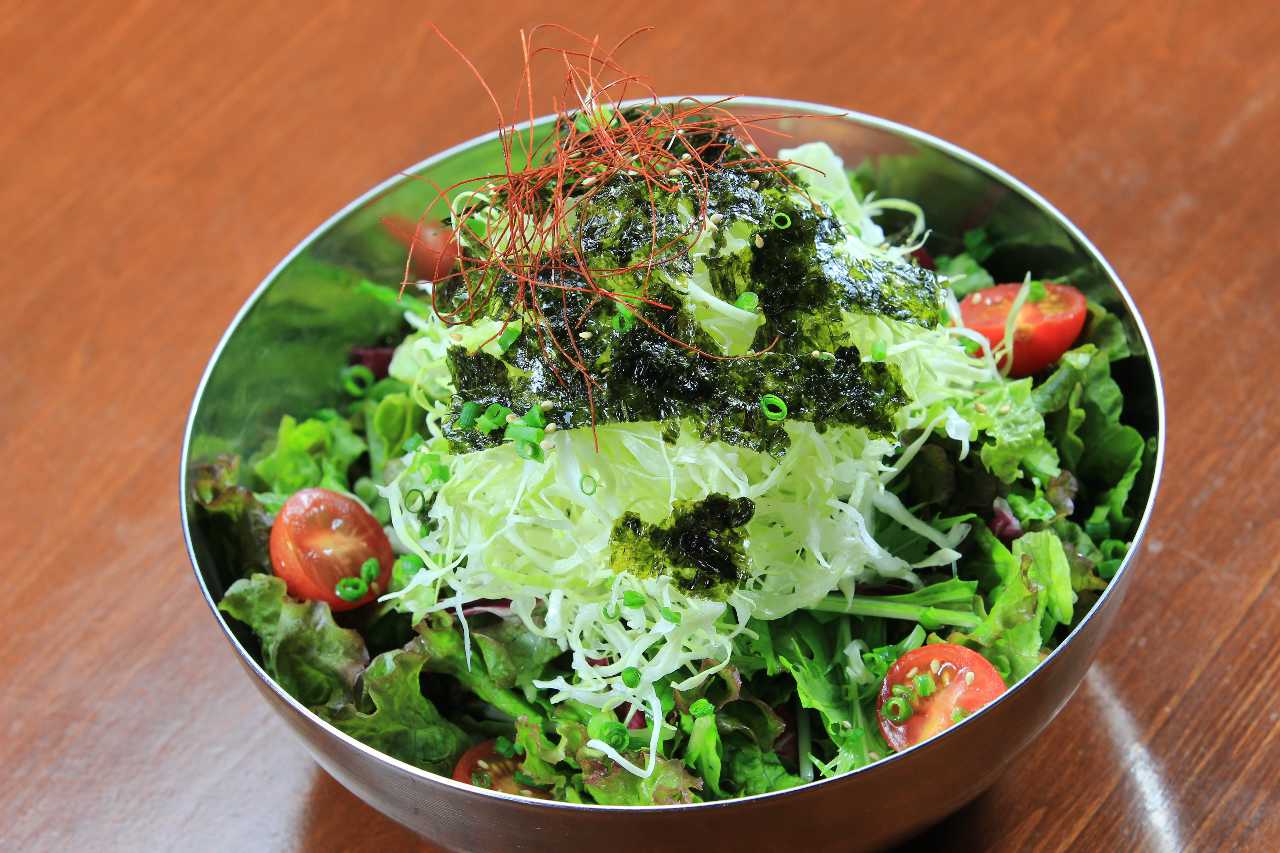一口大にちぎったレタスや野菜に、ごま油と塩などをかけて食べるサラダ料理。
