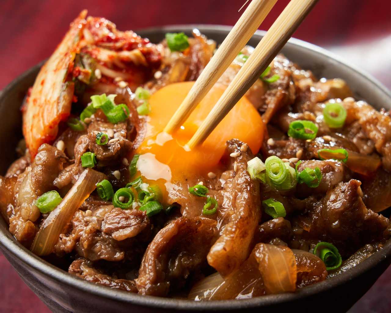 牛肉, ねぎ, にんにく, 米, 鶏卵, キムチ