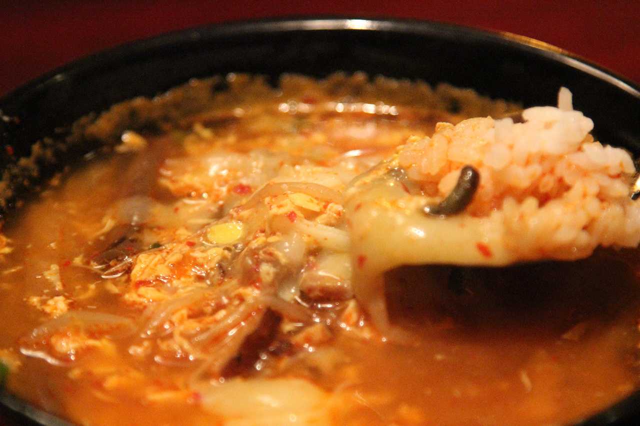 牛肉と数種類の野菜を煮込み、コチュジャンで味付けしたスープを、ご飯にかけた料理。