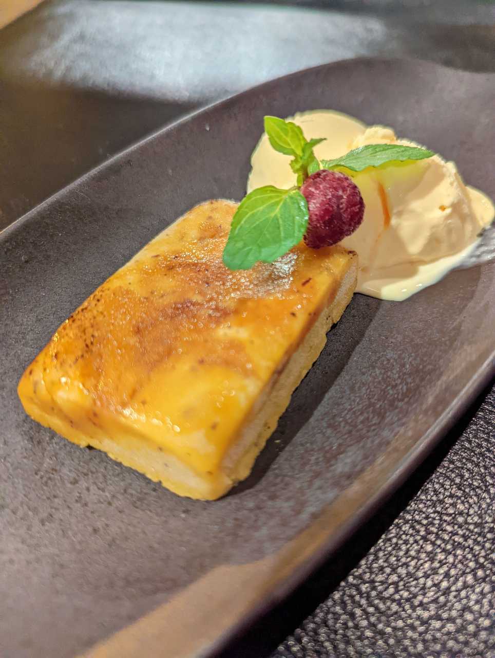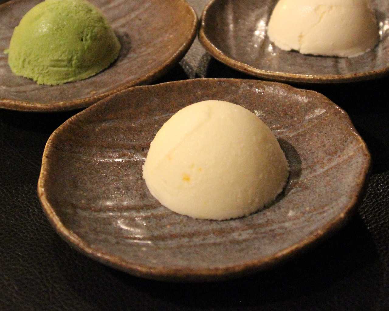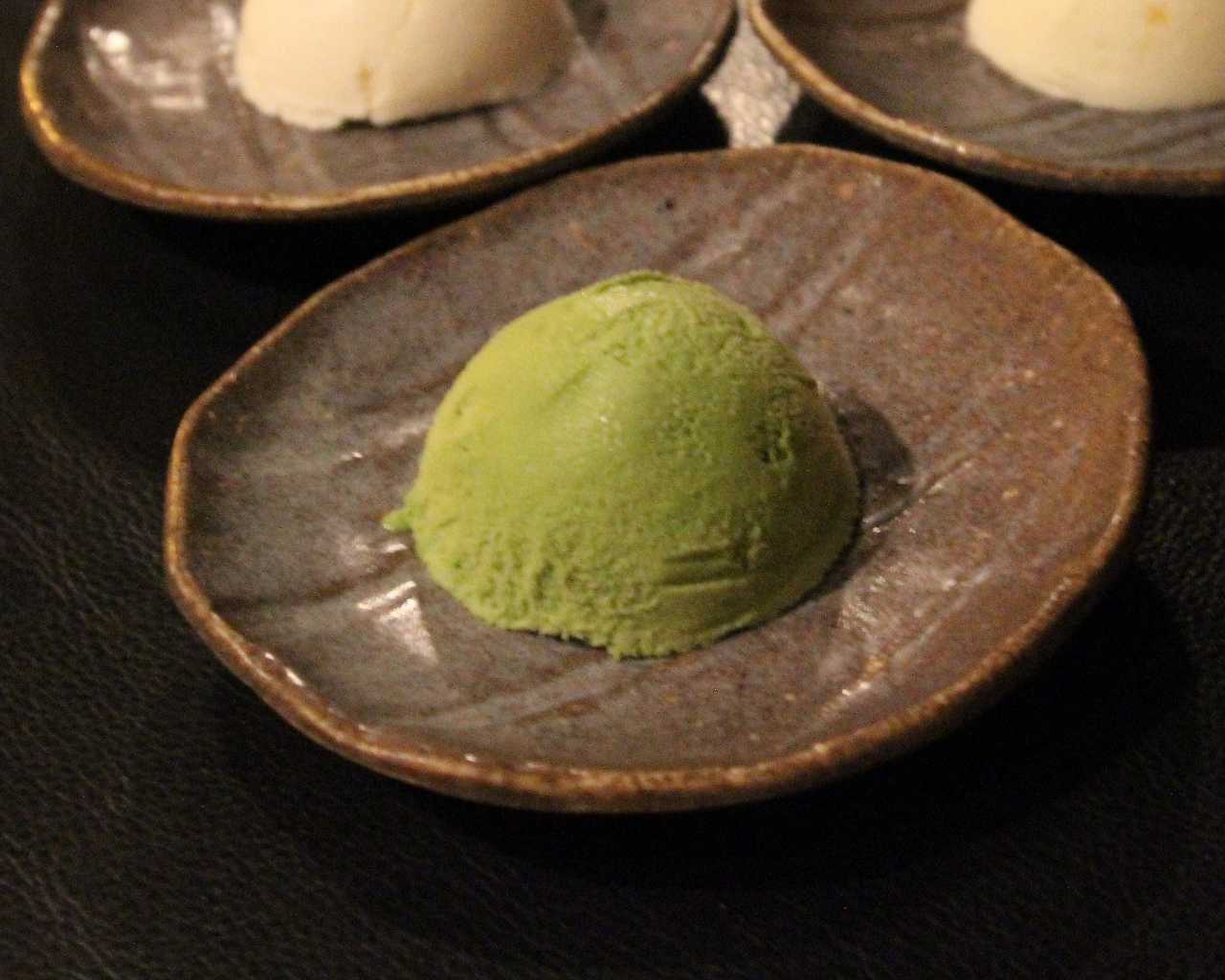 ペースト状にしたさつまいもに砂糖とバターなどを加え、形を整えて焼いたものに、バニラアイスクリームを添えた料理。