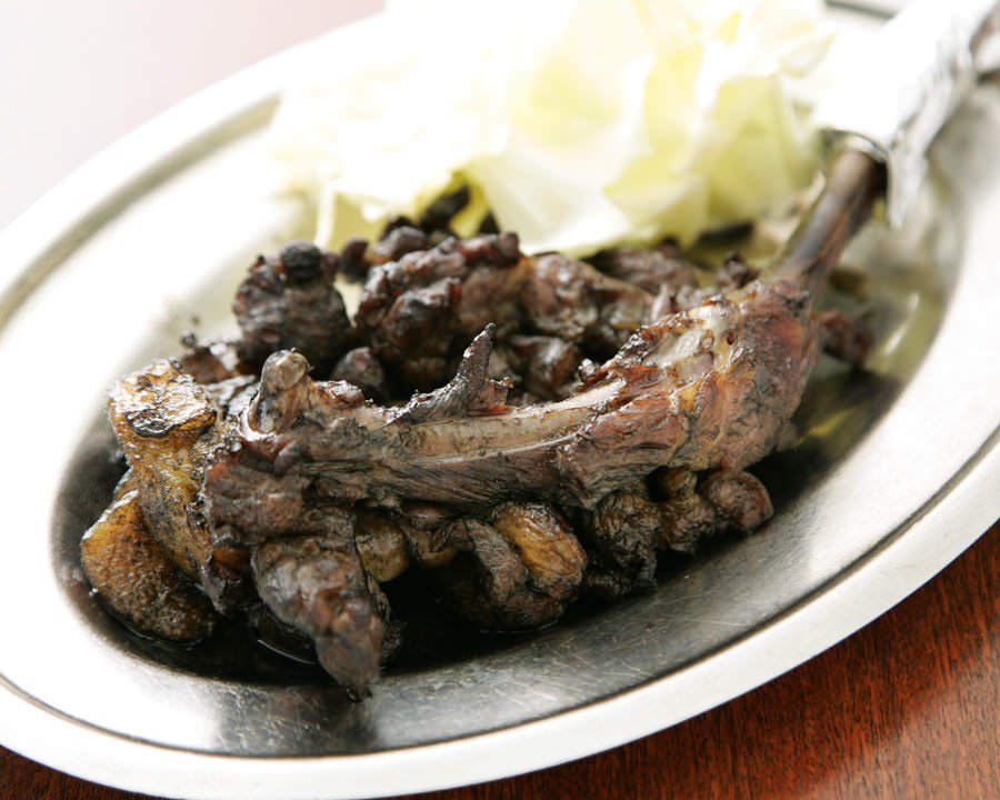 鶏肉の表面を炙って、醤油や薬味などをつけて食べる料理。