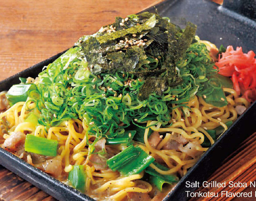 焼きそば, 豚肉, ねぎ, 海苔, いりごま, しょうが