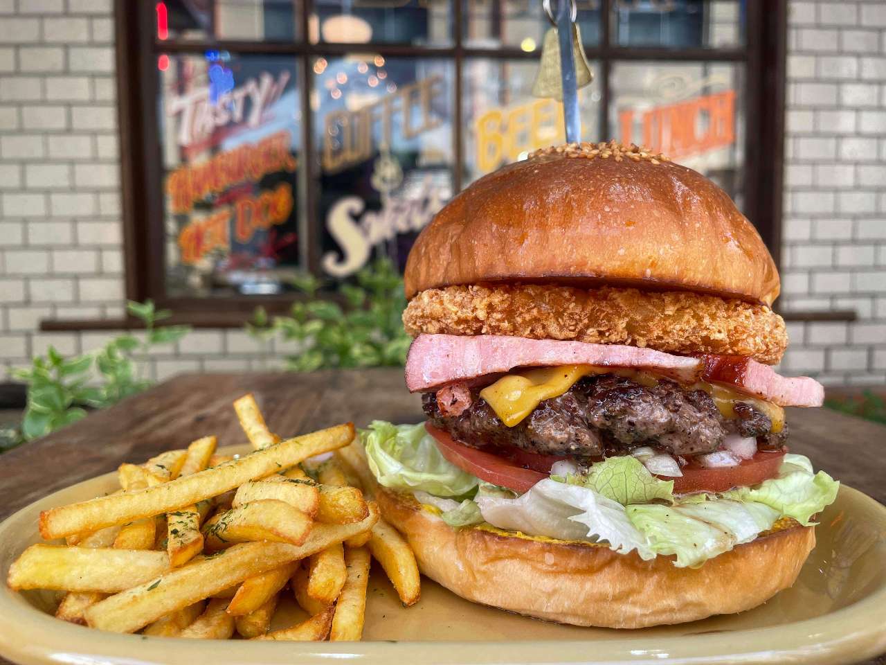 We are a hamburger diner which serves authentic gourmet hamburgers -- only a three minute walk from the B2 Exit of Oshiage Station of the Hanzomon Line or the Toei Asakusa Line.