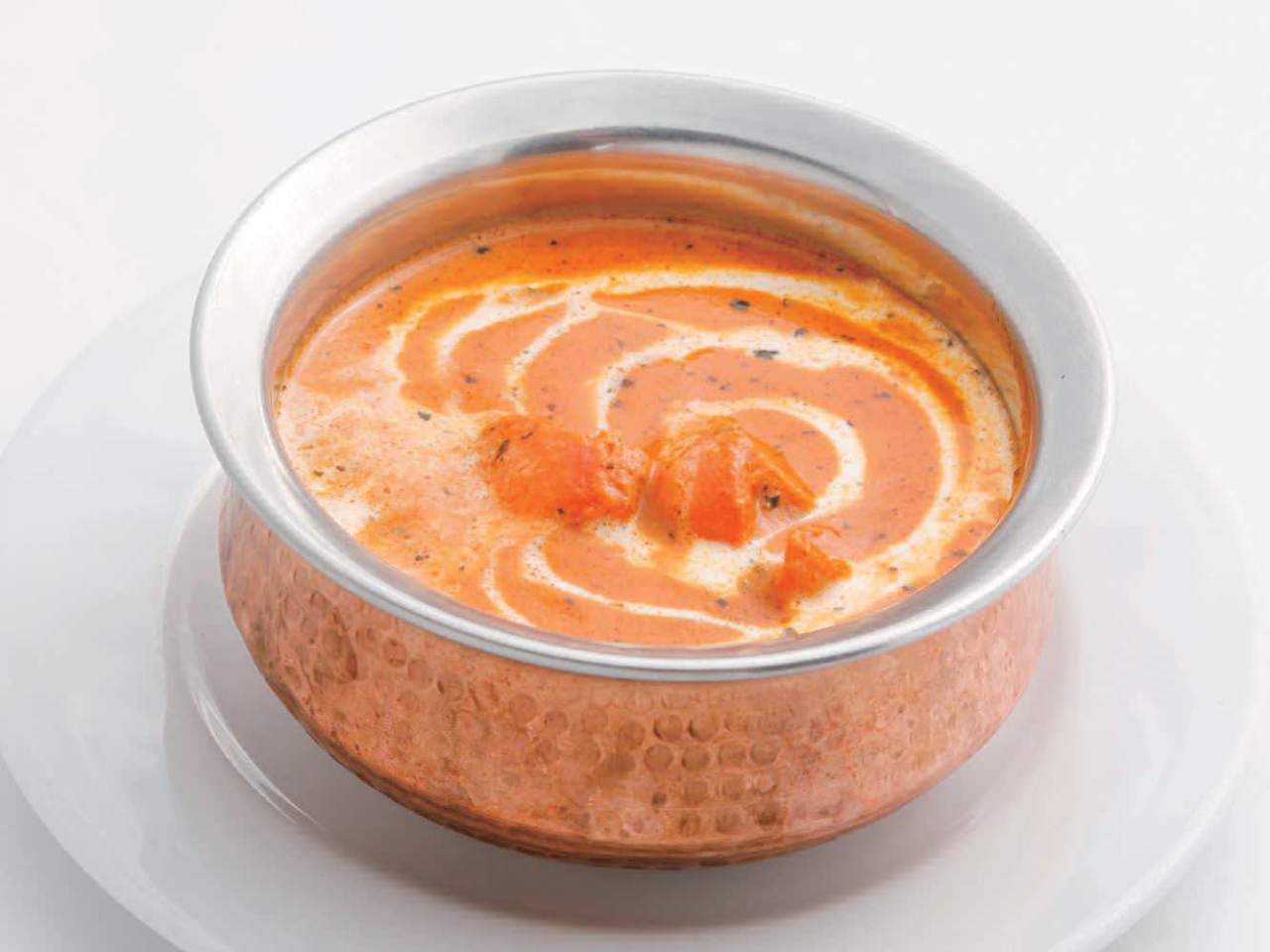 ご飯に、鶏肉とバターで煮込んだカレーをかけた料理。