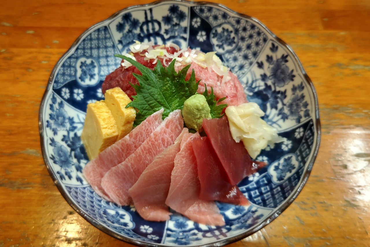 丼に盛ったご飯に、マグロの数種類の部位をのせた料理。