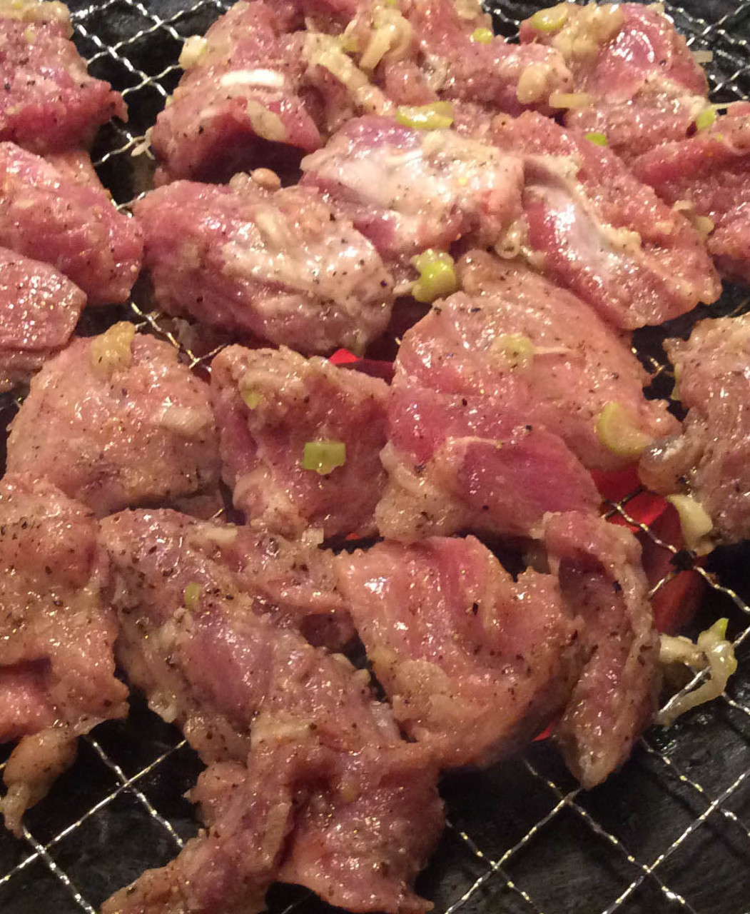 下味をつけた砂肝(鶏の胃の一部)を串に刺して直火焼きした料理。