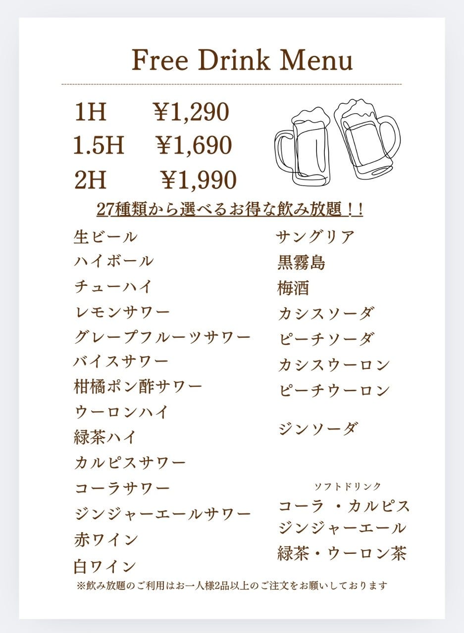 飲み放題メニューあり