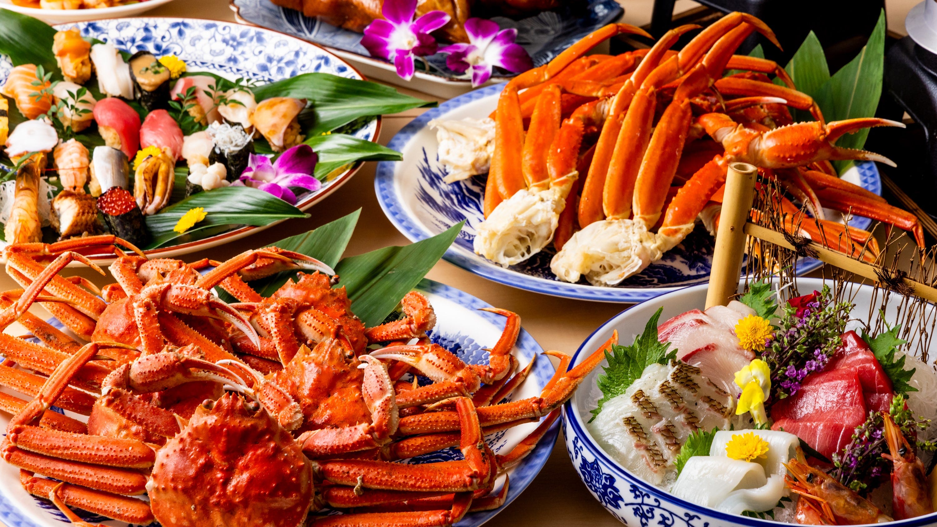 Our proud course includes all-you-can-eat of our specialty "real snow crab" and meaty "Toge snow crab"! You can also enjoy Edomae sushi made with fresh fish delivered directly from Tsukiji Market, and fresh sashimi. The course includes over 100 dishes, including seafood and authentic Chinese dishes◎The elegant Japanese modern space has 190 seats, including fully private rooms, so you can use it for any occasion. Please feel free to use it for a casual meal or any kind of banquet!