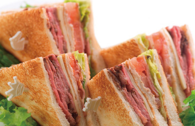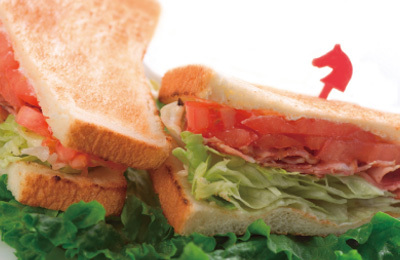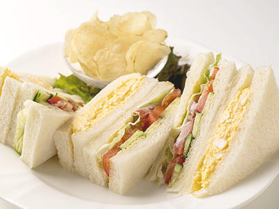ベーコン、レタス、トマトをメインに使用したサンドイッチ。