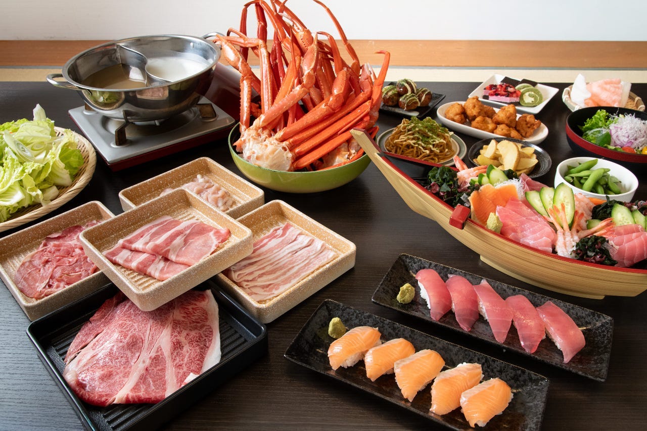 Our new restaurant offers a “Sushi・ Wagyu・Izakaya Buffet” experience with all-you-can-eat crab.