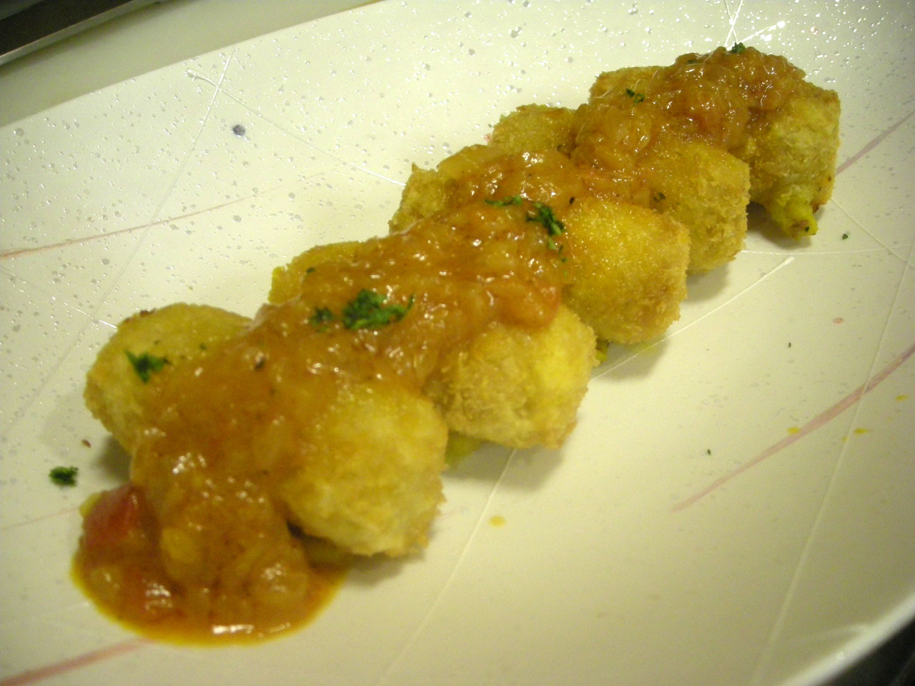 スライスされた豚のヒレ肉に衣をつけて、油で揚げた料理。