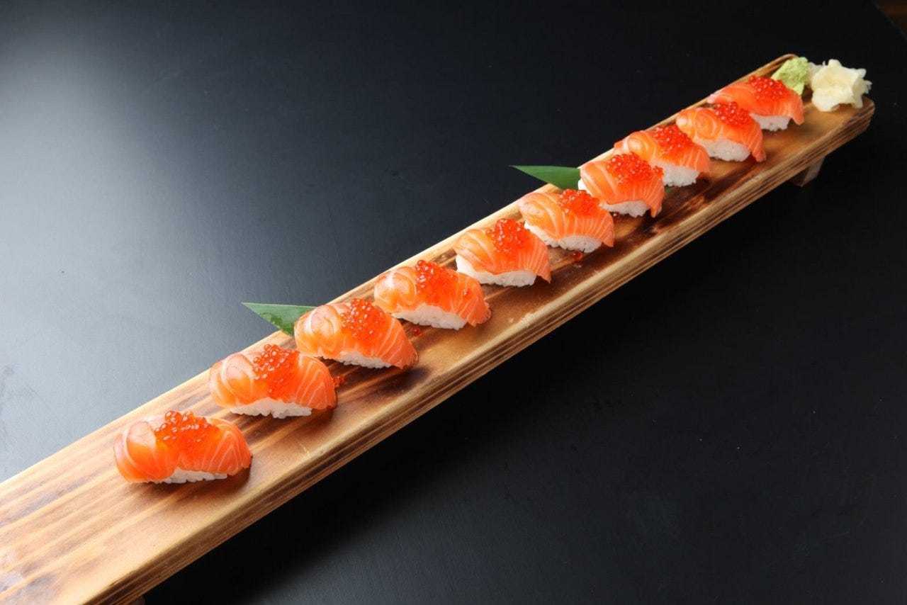 - 食材: 鮭(サケ), いくら, 酢飯