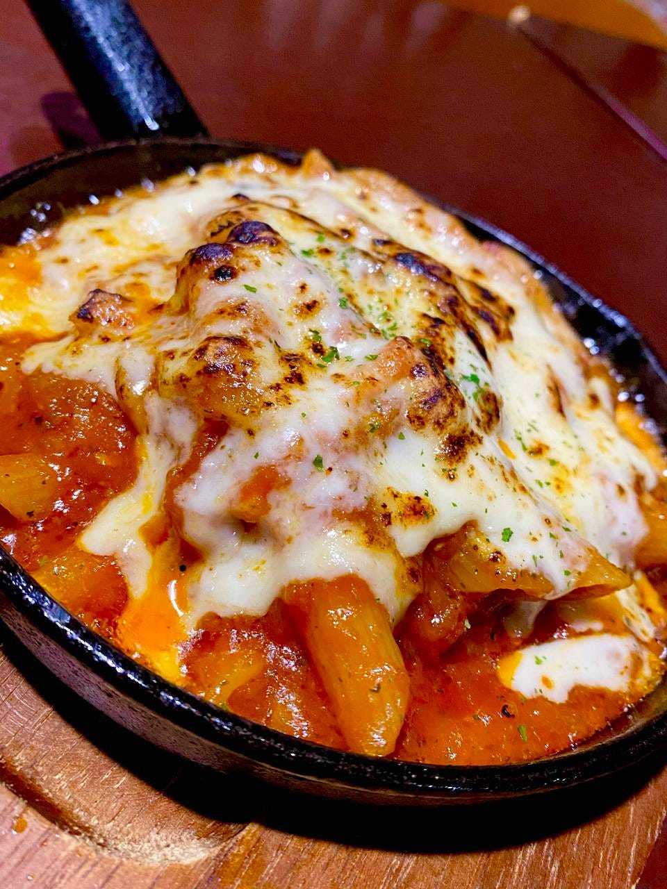 ビザ生地にチーズとベーコンと卵をのせ、卵は半熟になるまで焼いた料理。