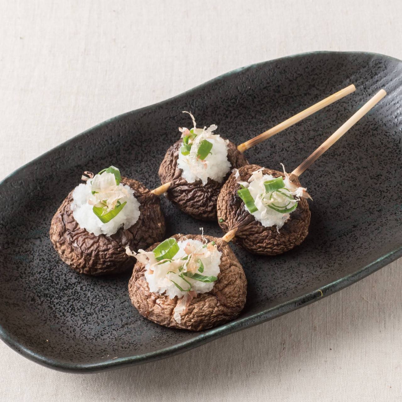 しいたけを少量の油を使ってフライパンなどで焼く料理。