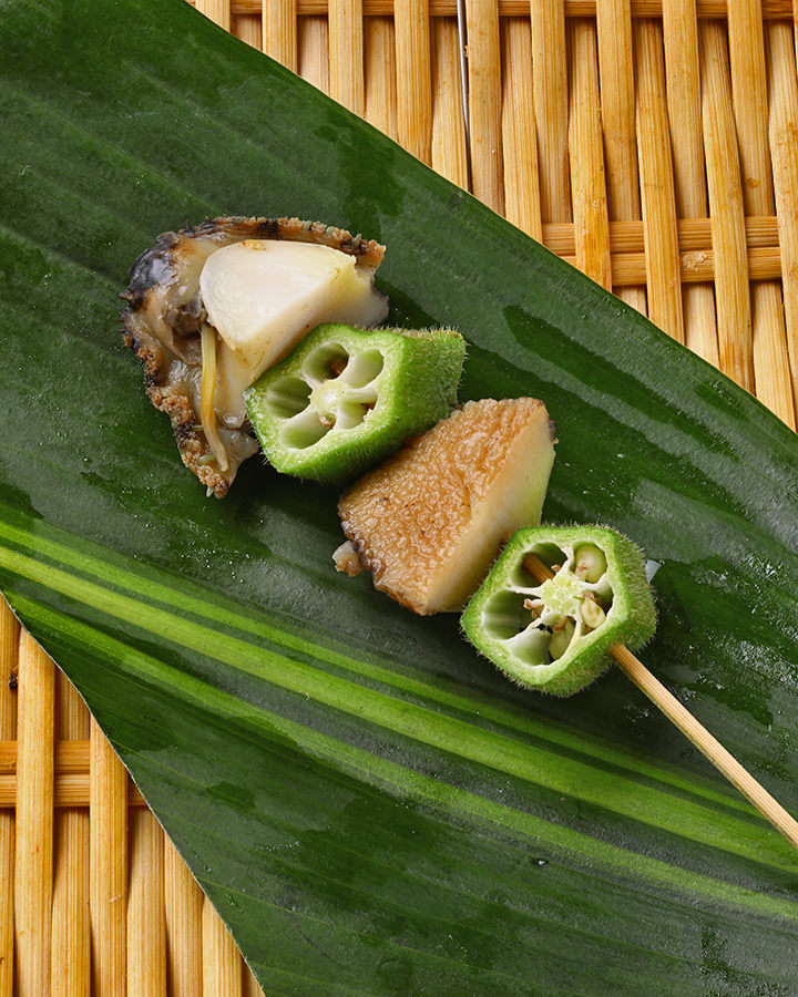 食材を串に刺し、素揚げまたは衣を付けて油で揚げた料理。