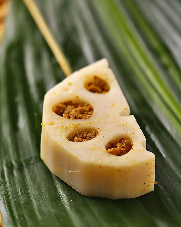 野菜を串に刺し、衣をつけて油で揚げた料理。