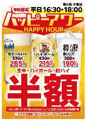 月~金 17:00~23:00(L.O.22:30、ドリンクL.O.22:45)
