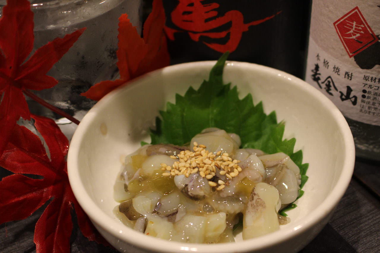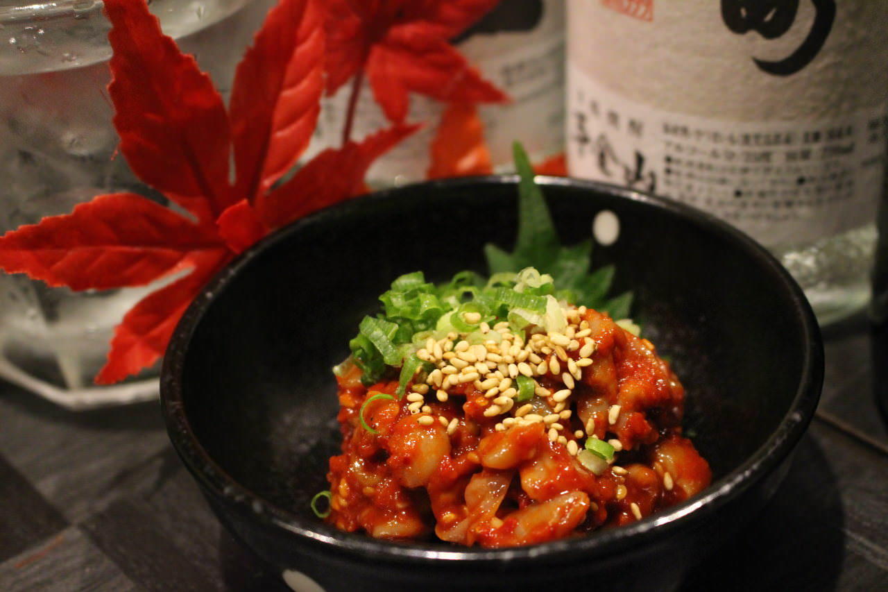 塩漬けにした鱈の内臓を、ごま油と唐辛子などの調味料で味付けした料理。