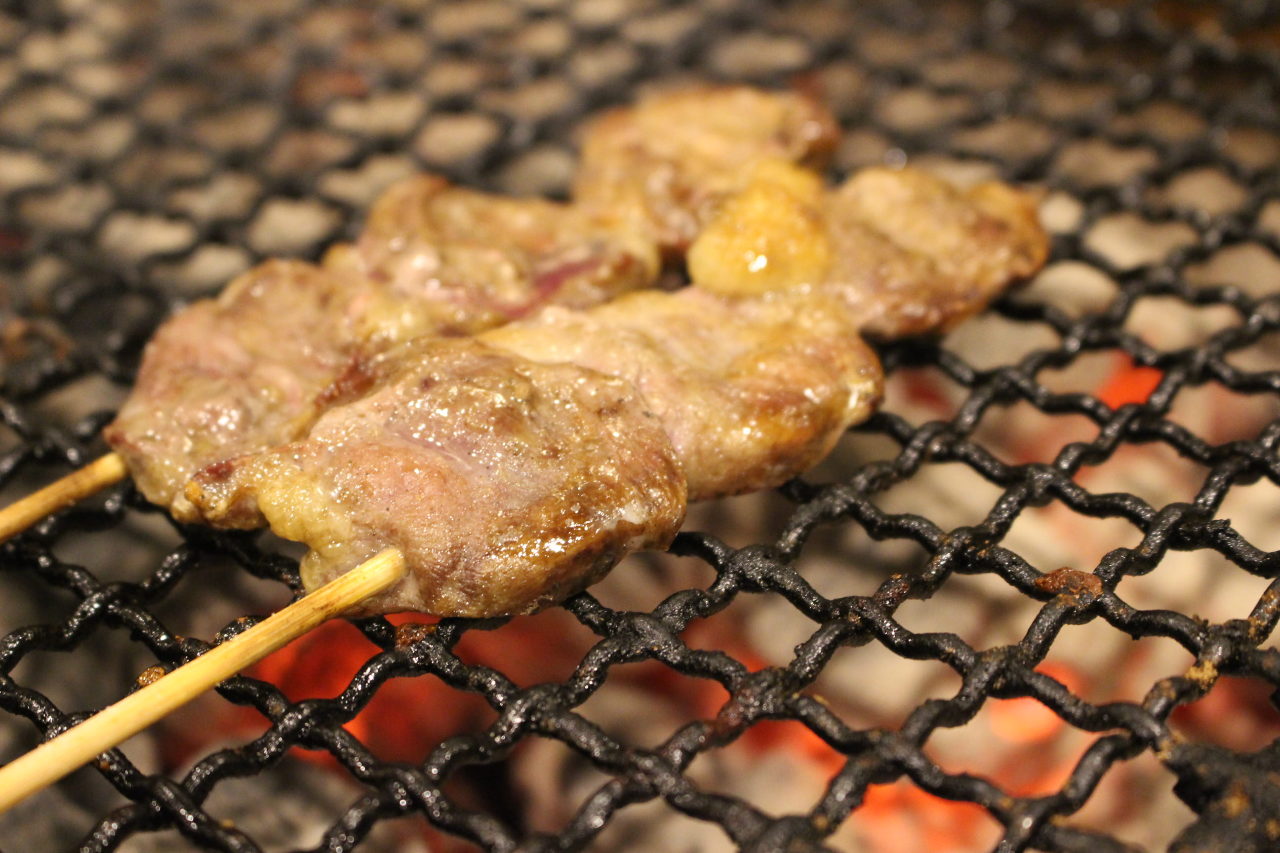 鶏の胸骨の先にある軟骨を串に刺し、直火焼きした料理。