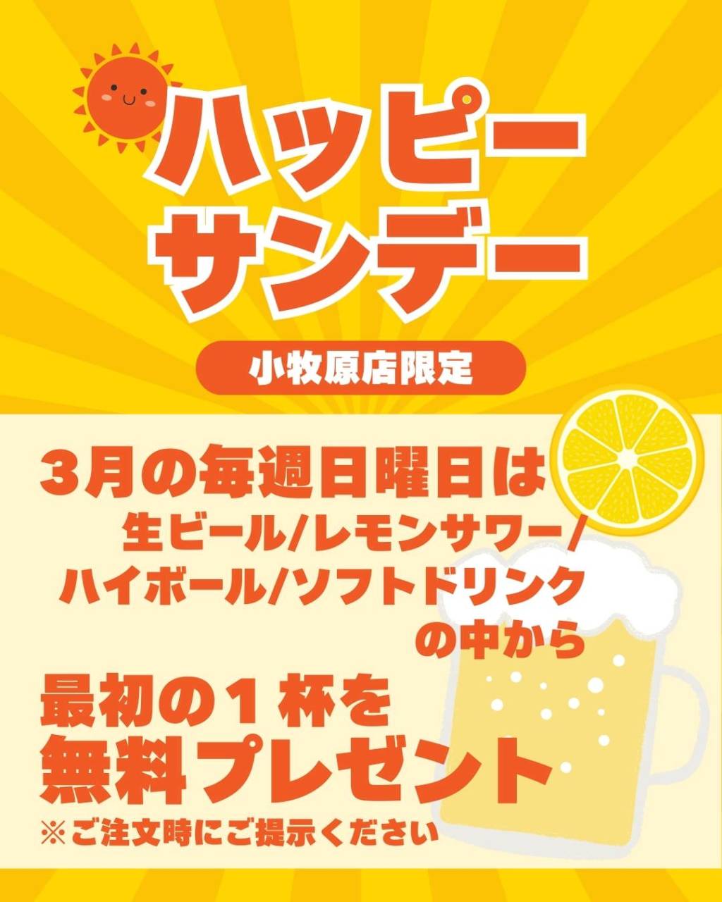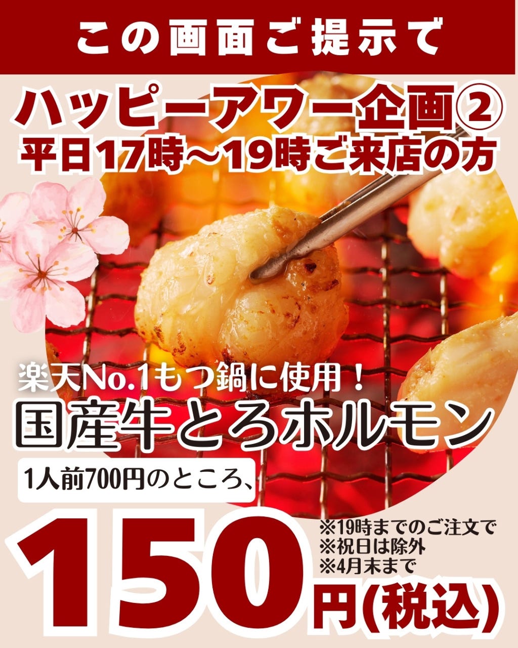 月~水・金~日・祝前日・祝日 ディナー:17:00~23:00(L.O.22:30、ドリンクL.O.22:30) 月~水・金~日・祝前日・祝日 ランチ:11:00~14:00(L.O.13:30、ドリンクL.O.13:30)