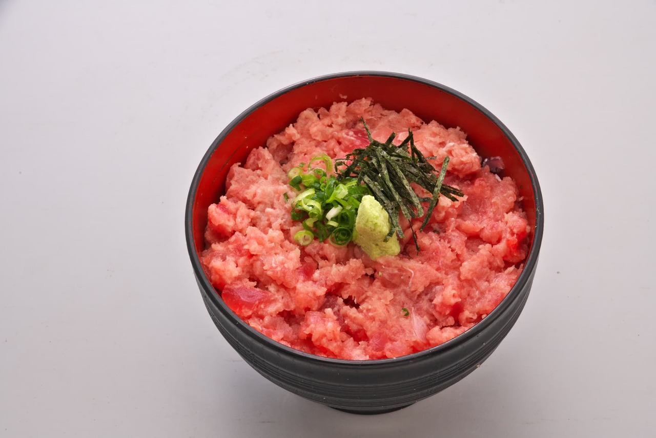丼に盛ったご飯に、ペースト状のマグロに刻んだネギを散らした料理。