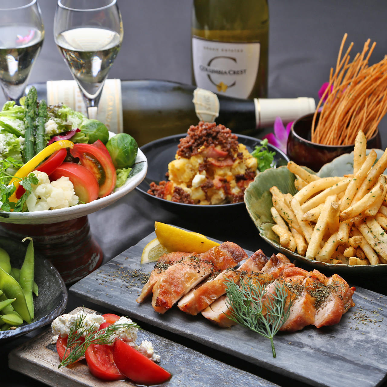 * こちらに記載されている食材情報等は代表的なもので、他にも使用されている食材がある場合もございます。また、季節や食材の入荷状況によりメニューや品数が変更になる場合がございますので、ご注意ください。