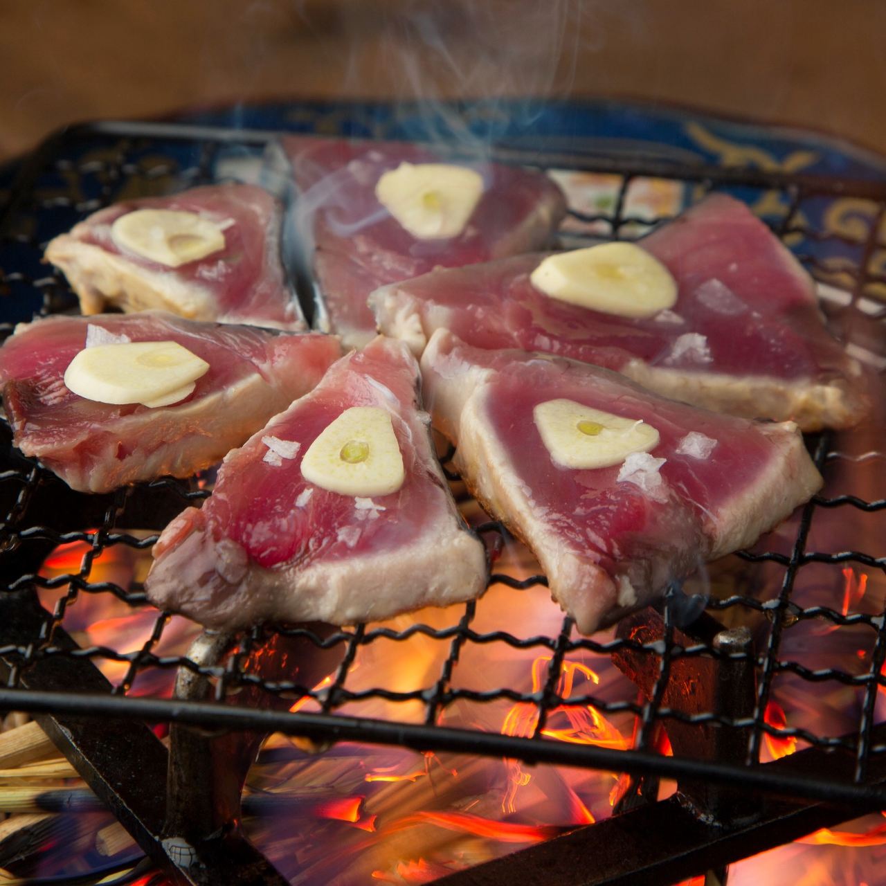 束にした藁に火をつけて燃やし、その火で鰹の表面を炙った料理。