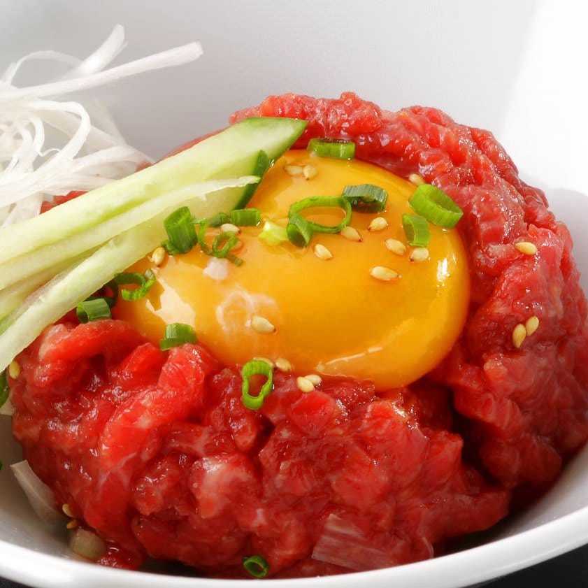 - 食材: 牛肉, 小松菜, にんじん, にんにく, 米, 卵黄, 海苔, キムチ, 温泉卵