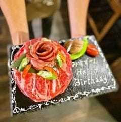 | メニュー紹介文 | 薄切りにした肉をケーキの形に盛り付けた料理。 |