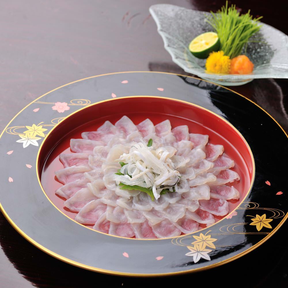 生のフグの身を刺身よりも薄く切り、醤油やたれをつけて食べる料理。