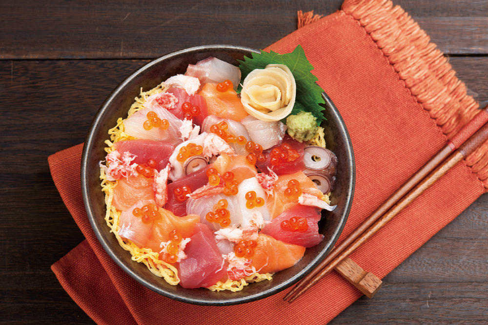 • 食材: マグロ, ホタテ貝, いくら, 大葉, ミョウガ, 米, 鶏卵, 海老