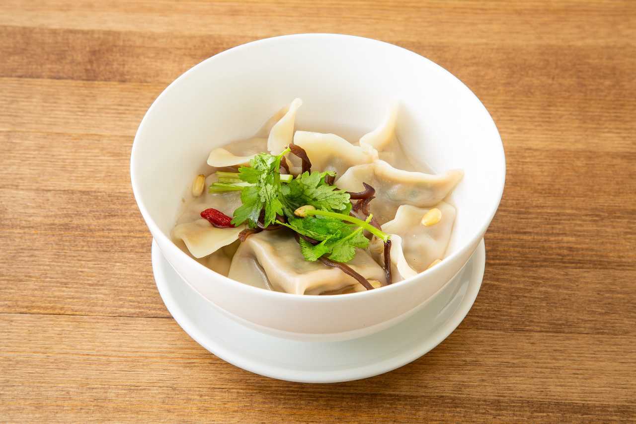 小麦粉の皮に、ひき肉と野菜などの具を包み、茹でたものをスープの中に入れた料理。
