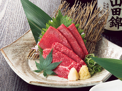 고등어 초회, 무, 푸른 차조기 잎, 도미, 참치, 연어, 왜문어, 새우, 해조, 여뀌, 양하