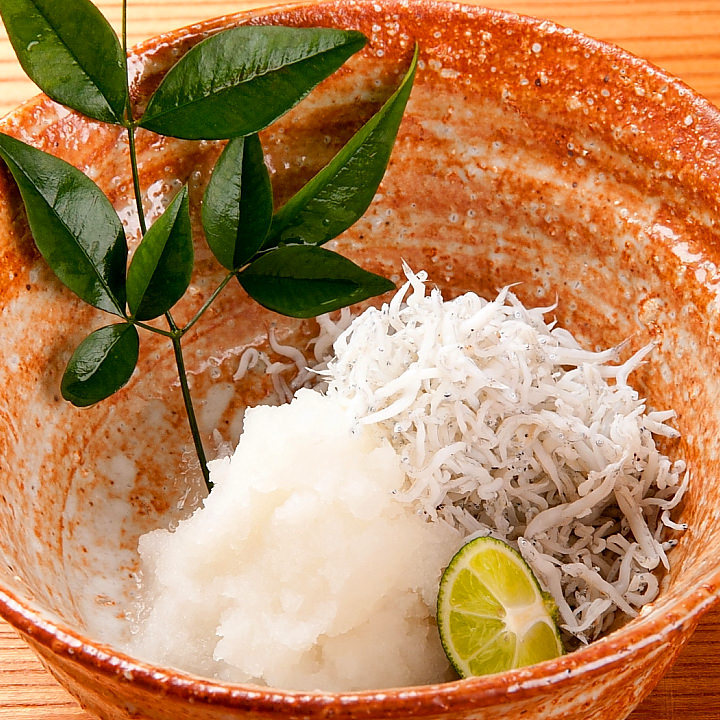 멸치에 갈은 무를 곁들여 낸 요리.