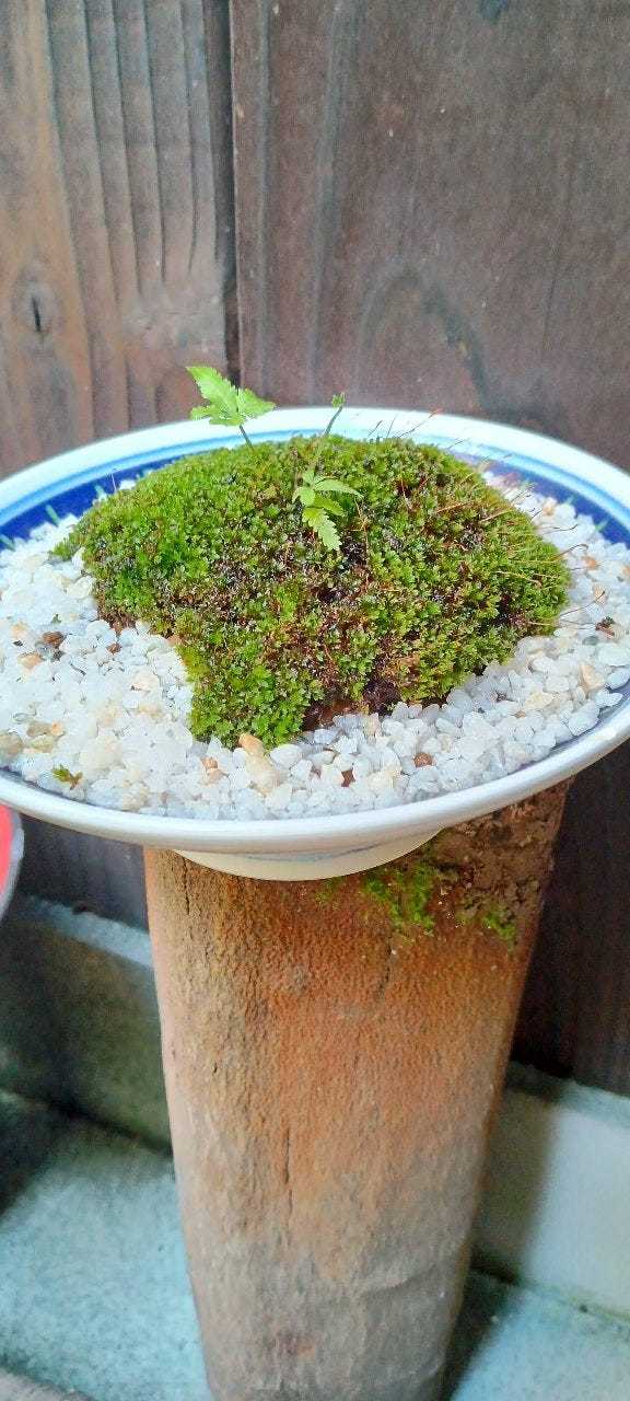 초가을, 발밑의 이끼는 시들고 바랜 색으로 약해 보이지만 점차 사라져가는 색채 속에서 존재감을 드러냅니다. 바위 그늘에 숨어 햇빛을 피한 이끼는 활기차게 포자를 퍼뜨리기 시작합니다. 츠와부키는 꽃대를 천천히 뻗으며 시원하고 상쾌한 노란 꽃을 피웁니다. 정원 깊은 곳에서는 팔각금반이 장난스럽고 기묘한 모양의 꽃을 피우고, 호랑가시는 불꽃놀이처럼 잠깐 반짝이는 꽃을 드러냅니다. 흰색의 난텐, 산호열매, 산호관목은 붉은 열매를 맺고, 사산카 동백의 부풀어 오른 꽃봉오리는 은은한 진홍빛을 살짝 드러냅니다.