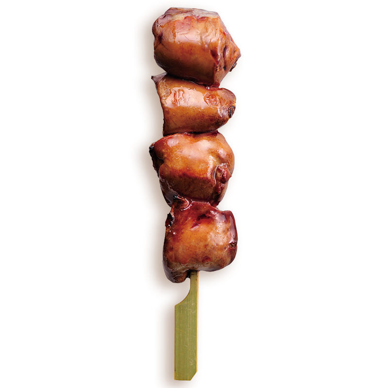 밑간한 소리레스(닭의 선골부위 살)를 한입 크기로 꼬치에 꿰어 직화구이한 요리.