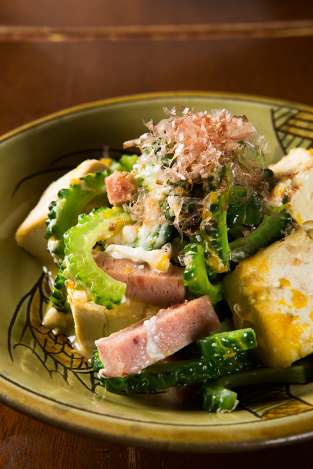 여주를 두부와 달걀과 돼지고기 등과 함께 볶는 오키나와 요리.