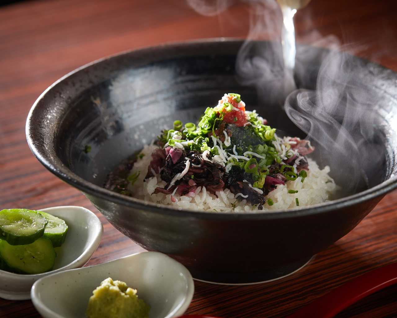 たっぷりアーサとじゃこの贅沢梅茶漬け