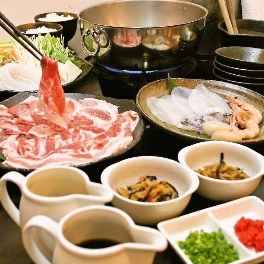 「류큐 재래 아구 돼지고기」를 샤브샤브로, 야키니쿠로, 세이로무시(찜통에 찐 요리)로도 즐길 수 있습니다.