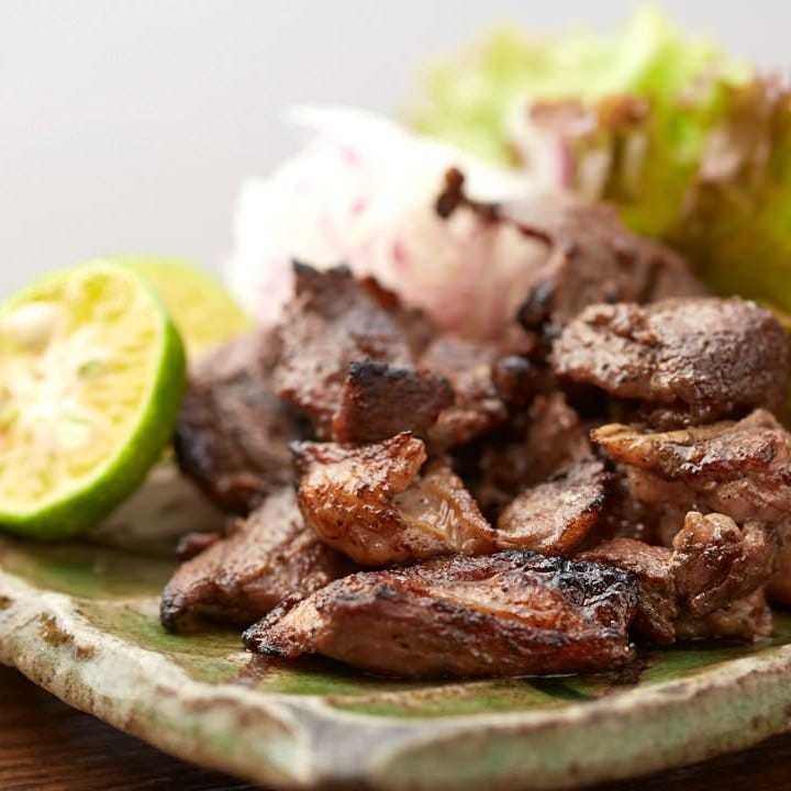 뼈가 붙어 있는 닭고기를 석쇠로 구운 요리.