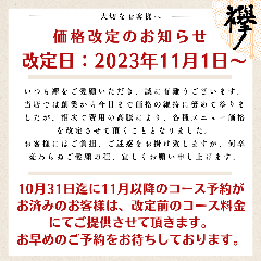 낮시간:11:30~14:00(토요일의 낮시간은 런치 전세 코스 예약에 한정합니다. 통상일(월금)의 런치 이용에 차지료는 발생하지 않으므로 안심해 주세요.)
