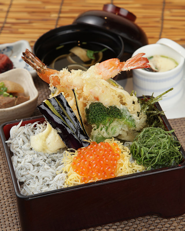 생 것이나 삶은 뱅어와 연어알 등의 해산물을 밥 위에 얹은 요리.