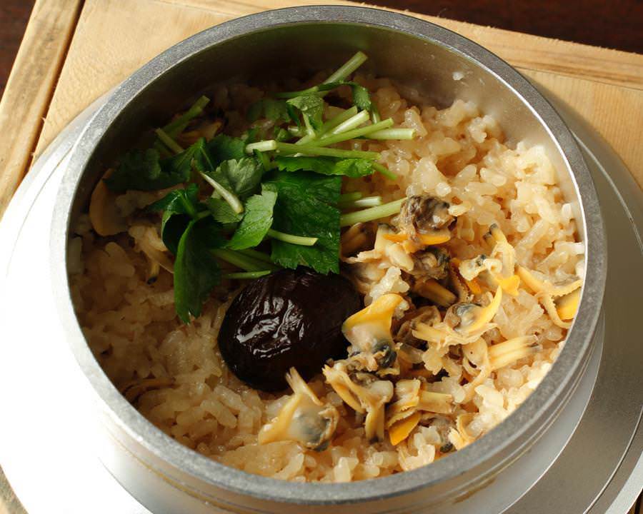 바지락, 표고 버섯, 쌀