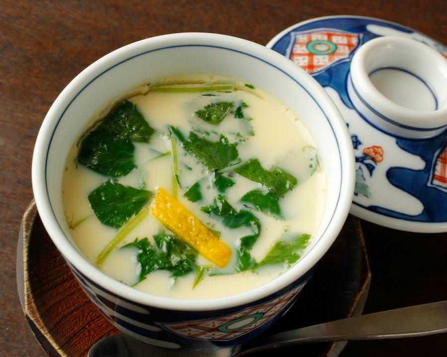 밥공기(자완)에 푼 달걀, 건더기, 육수를 넣고 섞어 찜통에 찐 요리.